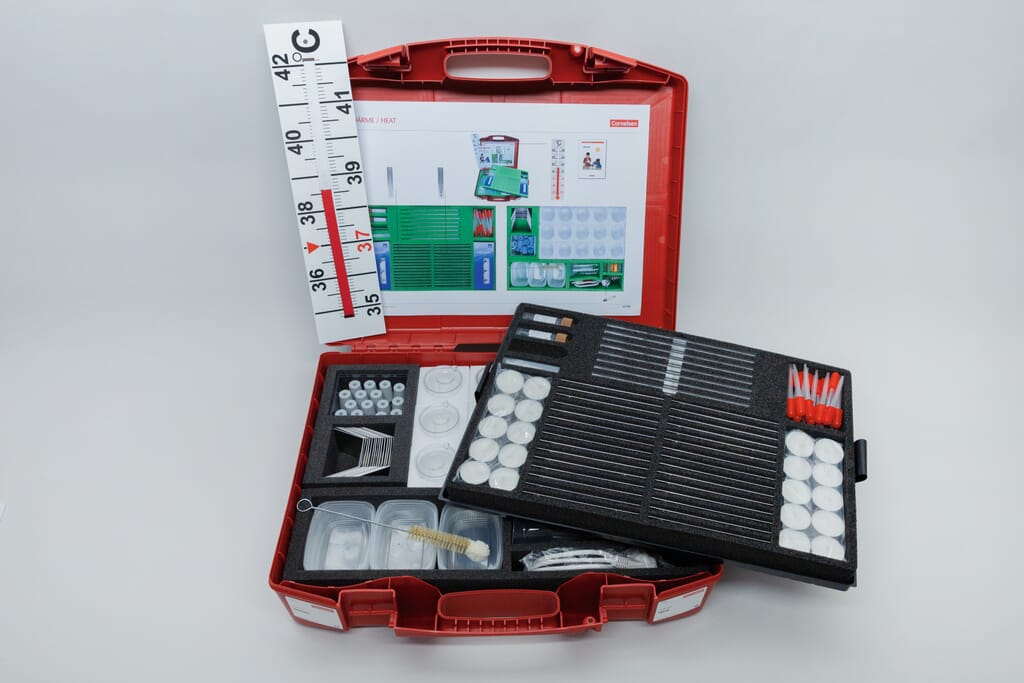 Med denne praktiske koffertene kan elever i barneskolen lære om enkle kjemiske fenomener. Det er fokus på varme og elvene utfører praktiske oppgaver hvor de bygger sine egne termometre, måler temperaturen. De vil studere begreper som frysepunkt, kokepunkt, fordampning og kondensering. I det medfølgende arbidshefte er det fokus på naturfaglig tilnærming hvor elevene må sette opp hypoteser, samle inn data gjennom eksperimetering og til slutt vurdere resultatene sine, alt tilpasset nivå for barnetrinn.