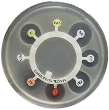Antibiotikaring hvor hver arm er imprignert med ulik antibiotika. Man kan slik se hvordan antibiotika påvirker bakterieveksten.
