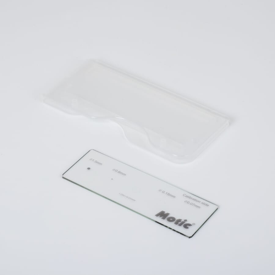Kalibreringsglasset benyttes sammen med kamera eller digitale mikroskop fra Motic (sammen med Moticonnect app eller Motic Image programvare). Man kan også benytte det manuelt sammen med et mikroskop med måleokular