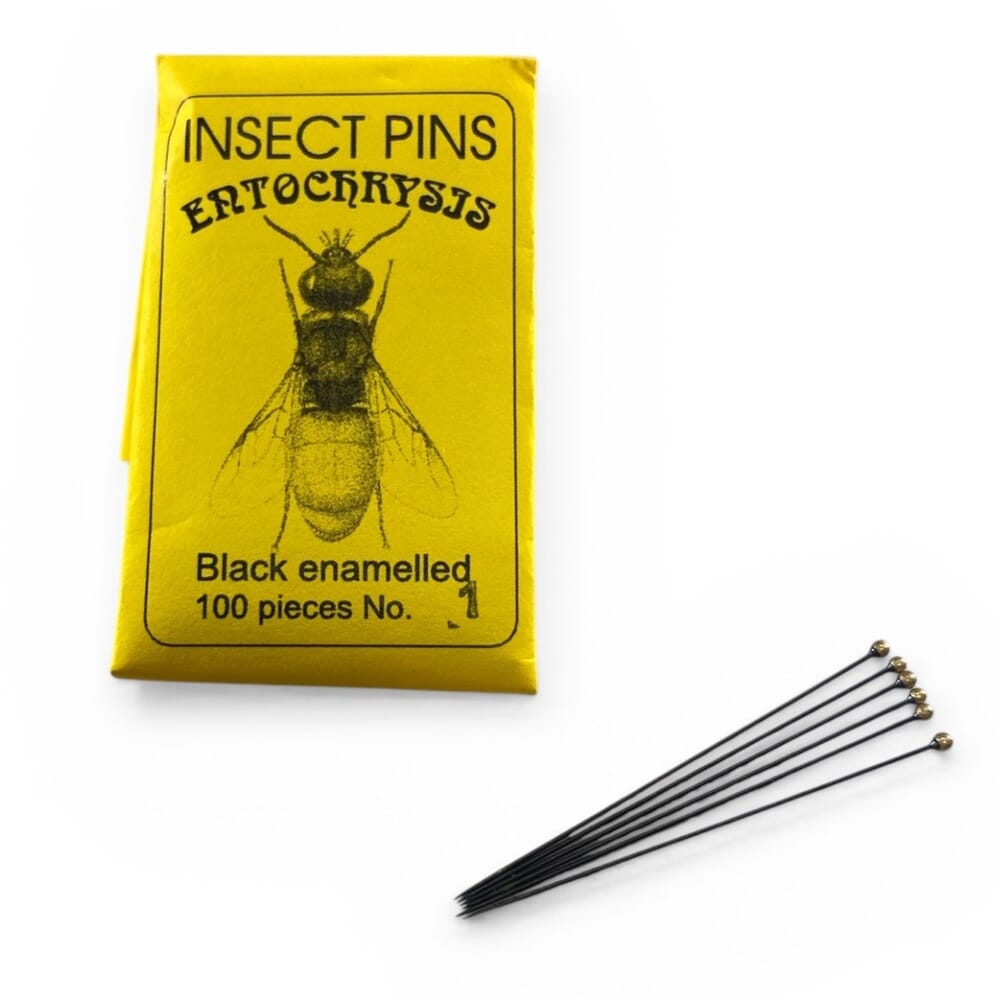 Sorte insektsnåler kommer i flere størrelser. De tynneste nålene vi selger er i str. 00 som tilsvarer en tykkelse på 0.30 mm i diameter. Den største nålen nr. 1 har en diameter på 0.35 mm. Nålene har en lengde på 38 mm.