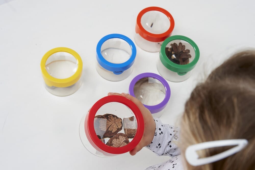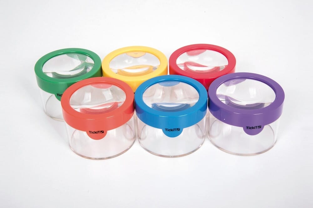 Sett med 6 stk store lupebokser i ulike farge. Passer fint for barnehage og småtrinnet