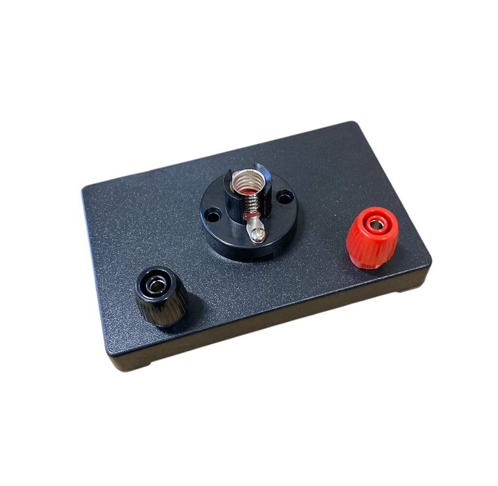 Lampeholder for med skrufatning for pære E10. Uttak for vanlioge ledninger med bananbøssinger 4 mm, eller sikkerhetsbøssinger