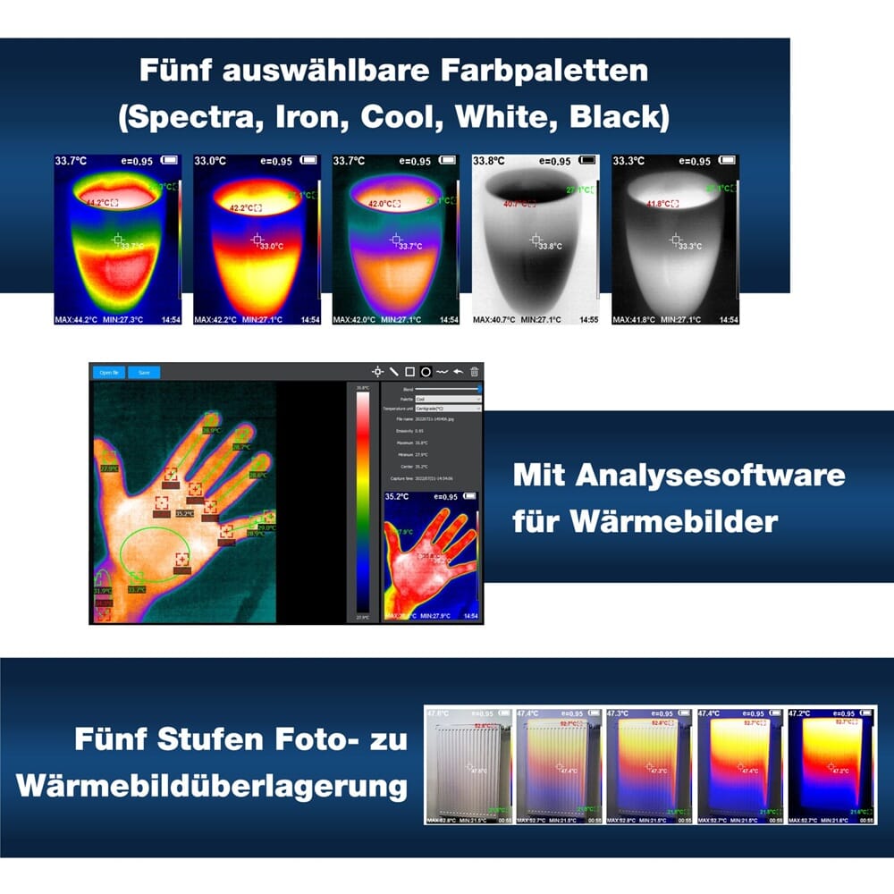 Kamera lar deg enkelt overlappe bilde fra visuelt bilde med termisk bilde slik at bildene blir enda klarere og skarpere. Se evt komplett spesifikasjoner og bruksanvisning i vedlagt dokument.