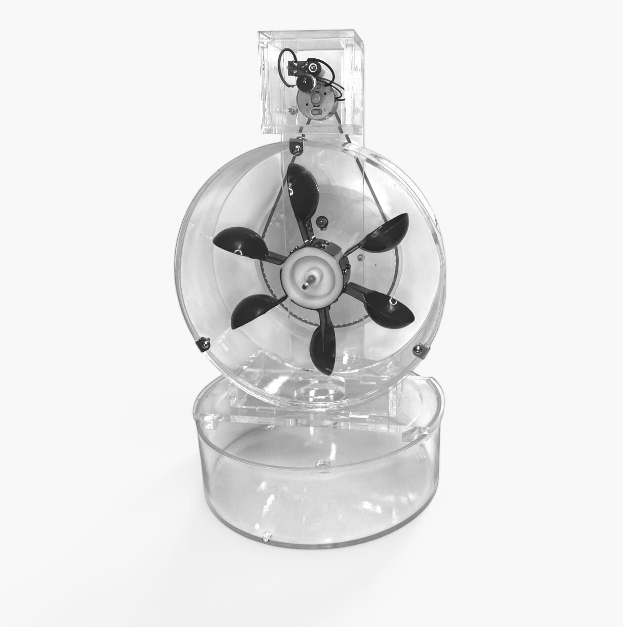 - Bruk et målebeger og hell vann i strål gjennom åpningen i modellen slik at vannet treffer turbinen