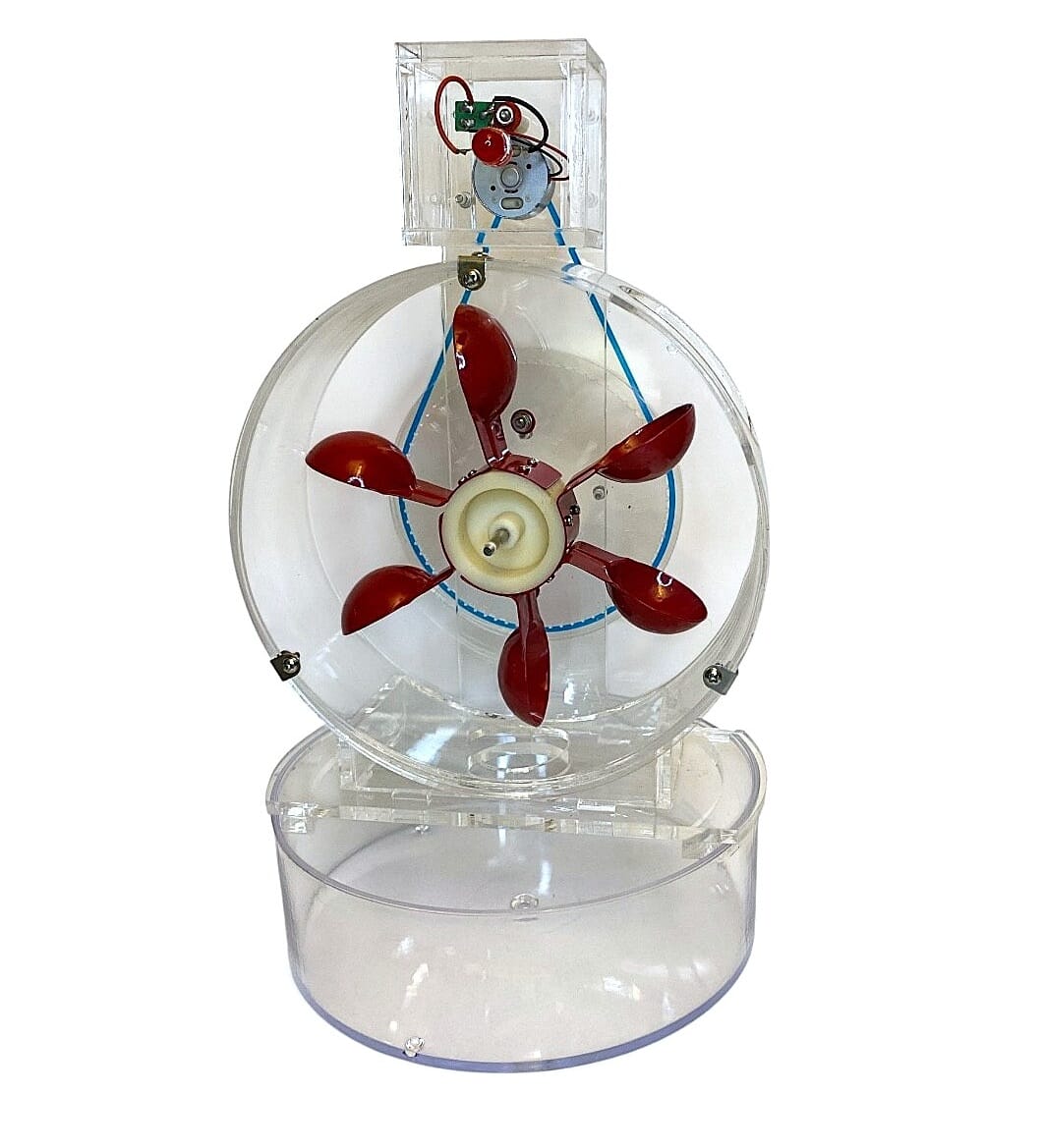 Modellen er i pleksiglass slik at man får fritt innsyn i hva som skjer.