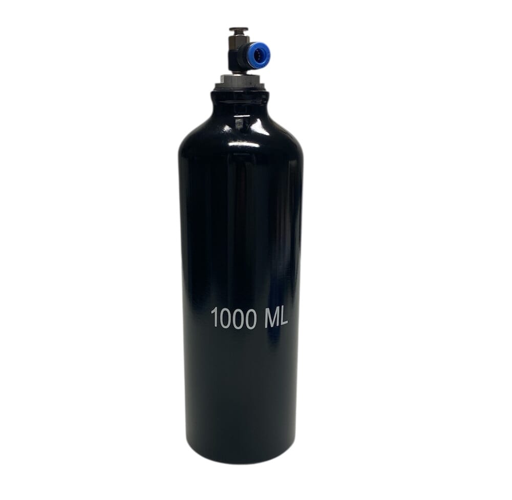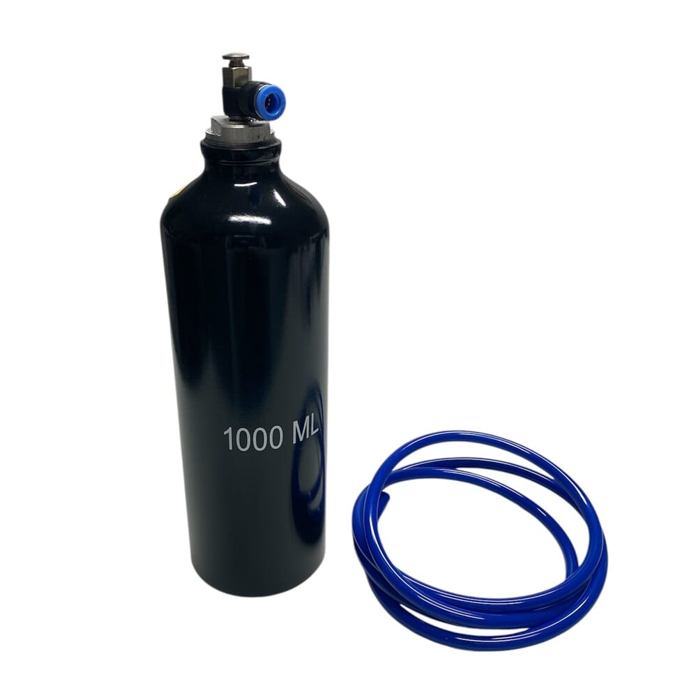 Flasken er påkoblet en ventil slik at den kan kobles til vakuumpumpe, og dermed tømmes for luft. Vei flasken før og etter og se at det er en foskjell! Flaksen er 1000 ml og man skal kunne oppnå en forskjell på inntil 1.5 g.