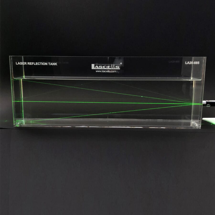 Ved å tilsette vann og litt såpe i tanken, kan lysbanen til en laserstråle enkelt gjøres synlig. Refleksjonstanken gir mulighet for utforsking av flere grunnleggende optiske fenomener, inkludert brytning, total intern refleksjon og kritisk vinkel. Ved bruk av et diffraksjonsgitter (ikke inkludert) kan man observere diffraksjonsmaksima-strålene. Dette vil engasjere elevene og gi liv til optikkdemonstrasjonene dine.