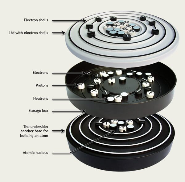 Atommodellen er et prisvinnende og flott hjelpemiddel for elever å lære seg om atomer, ioner og isotoper.