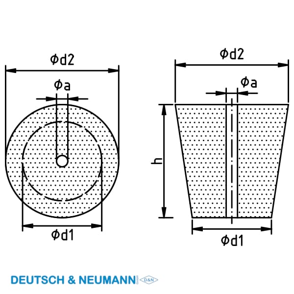Diameter bunn/topp: 36/44 mm. Høyde: 40 mm. Passer til våre erlenmeyerkolber standard (ikke simaks) 1000 og 2000 ml.