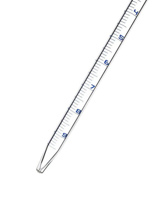 Standard målepipette med gradering. Tåler syrer og baser. Oppsuging med peleusballong eller pipettesuger.