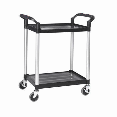 Trillebord med hyller i kraftig plast. Lasteevne per hylle er 125 kg.