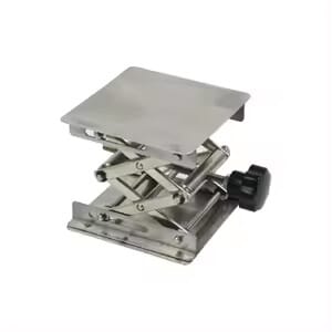 Laboratoriejekk i rustfritt stål. Kan justeres opptil 250 mm. Mål: 150 x 150 mm.